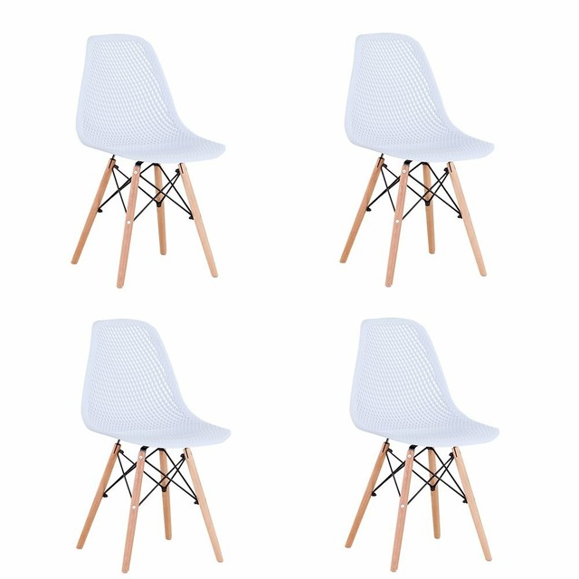Set Of 4 18 Plastic Molded Mid Century Modern Dining Chairs Beechwood Legs With Wire Accent White Ofm Target